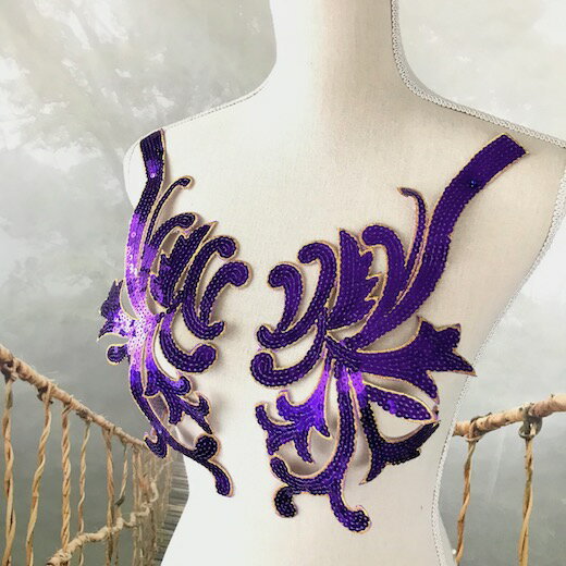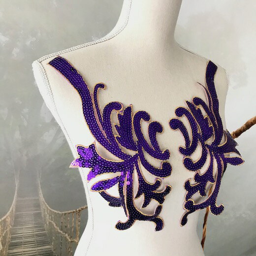サイズ:H33cm W15cm カラー:パープル・ゴールド 左右セット アイロン接着できます。