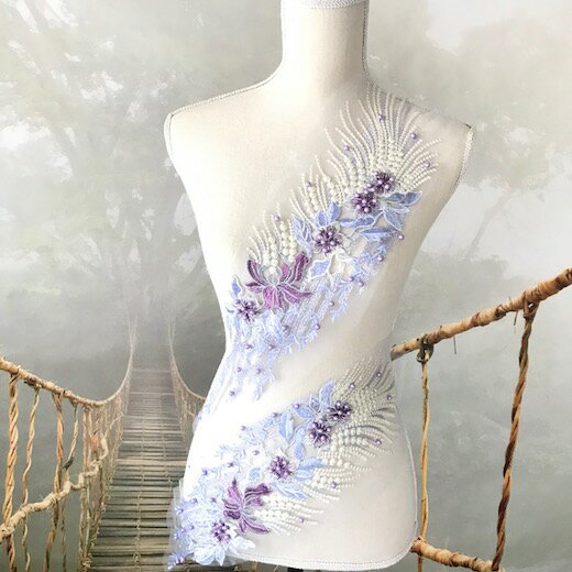 ビーズとラインストーン付きでとても 高級感のある花模様の刺繍チュールモチーフです。