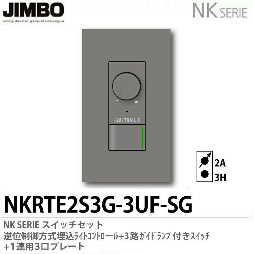 【JIMBO】NKシリーズスイッチ・プレート組合わせセット逆位制御方式埋込ライトコントロール+3路ガイドランプ付きスイッチ+1連用3口プレート色:ソリッドグレーNKRTE2S3G-3UF-SG