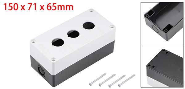ボタンホール番号:3; 素材:プラスチック【属性2】ボタン穴サイズ:22mm;合計サイズ:150 x 71 x 65mm(L * W * H)【属性3】表面実装、密閉されたプラスチック製の電気エンクロージャスイッチの押しボタンボックス。