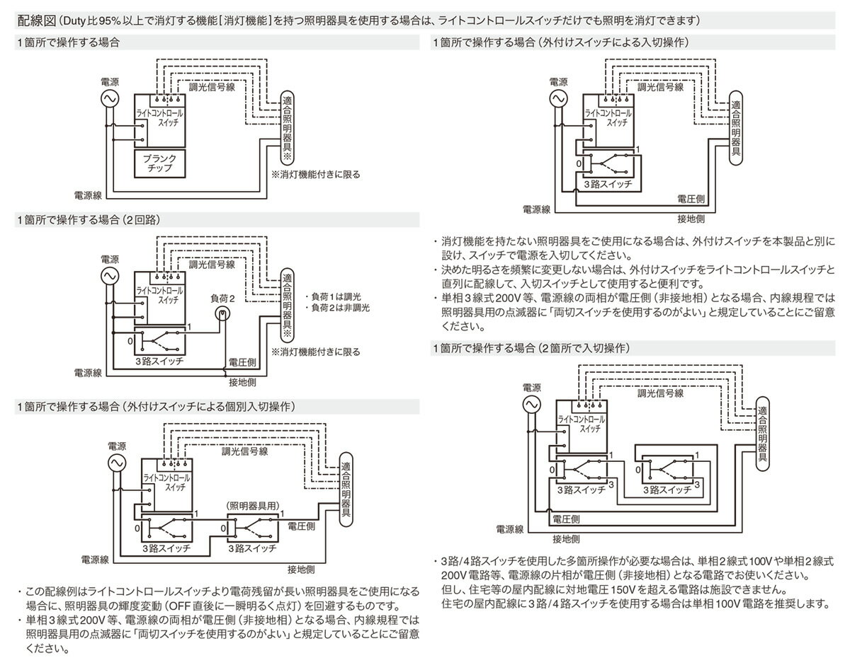 (電源線の2本に加え、調光信号線2本の配線が必要です) 照明器具の入力電源をスイッチングしないため、調光変化がスムーズで、調光範囲をフルに制御できます。