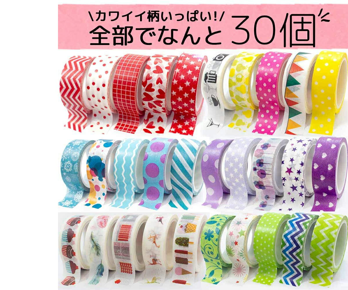 kerata マスキングテープ 30個 セット 15mm幅 5m巻 オリジナルレシピ集 巻き巻きプレート3枚付 デコレーション DIYに! (30個セット)